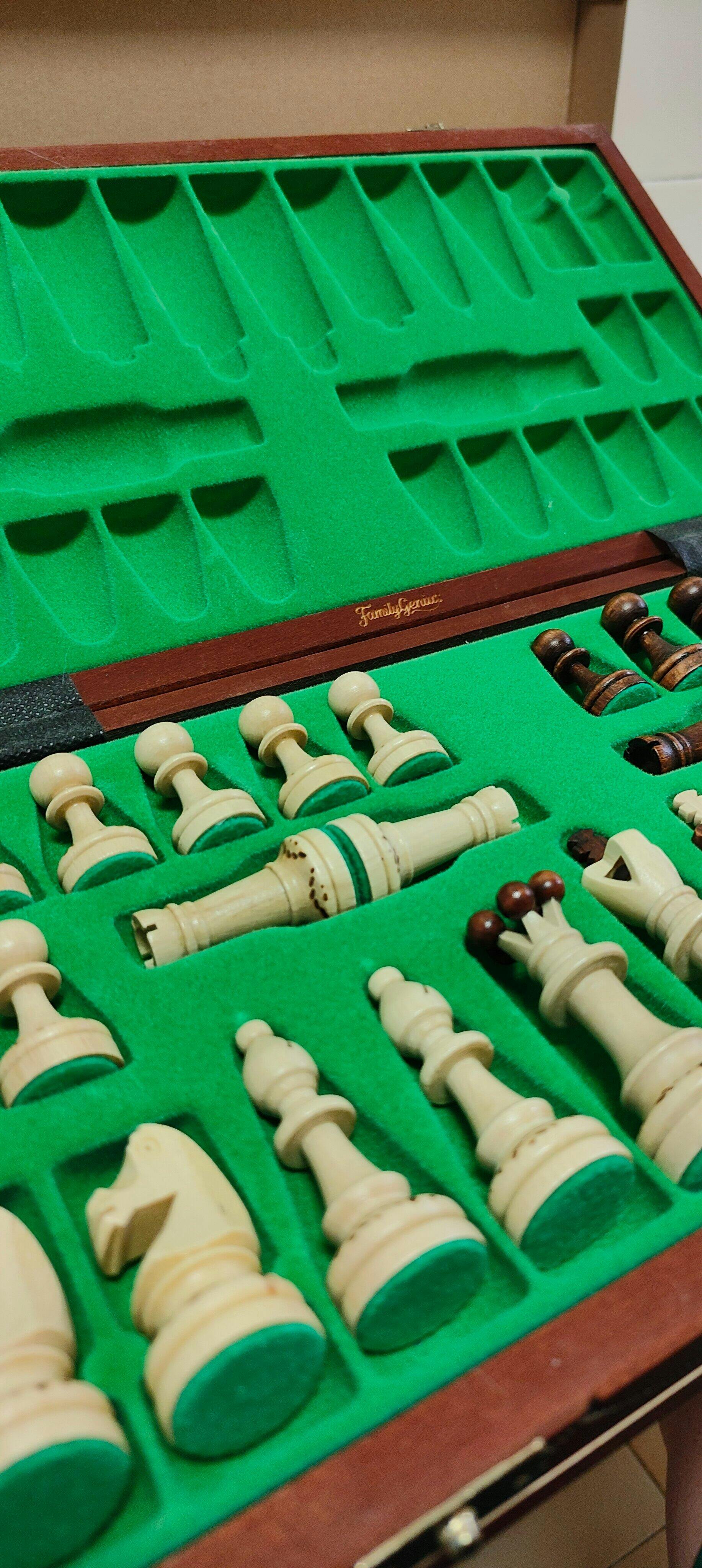 Las piezas artesanales , cuidadosamente esculpidas en el icónico estilo Staunton, evocan siglos de maestría.